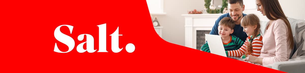 *Gültig vom 06.04.2026 bis 19.04.2026 bei Neuabschluss von Salt Swiss Max (CHF 24.95/Mt. statt 72.95) für 24 Monate. Der Rabatt von CHF 48.– wird pro Monat auf der Rechnung gutgeschrieben. Exkl. Aktivierungsgebühr von CHF 59.95. Mindestvertragsdauer 24 Monate.